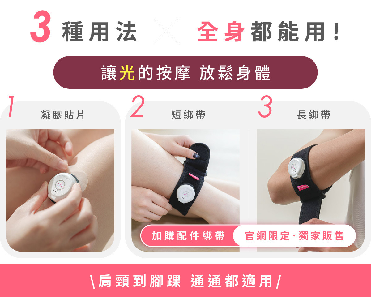 身體卡卡,有時是從小範圍開始的。為了對應這些難解狀況,【 舒服雷 Soft Laser 】提供三種用法,讓您能自行打擊不同範圍的緊繃,從頭到腳都能用!